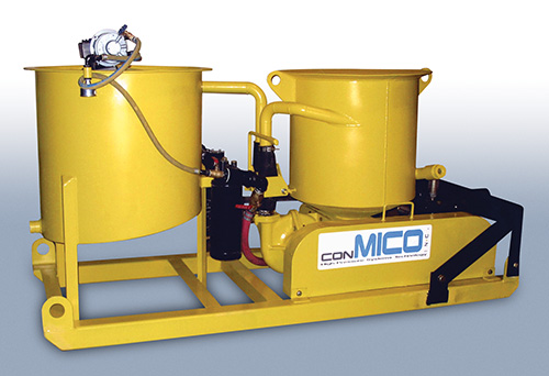 ConMICO's mixer can handle cement/sand ratios up to 1:3 by weight and produce pumpable mixtures. It will mix a wide range of materials such as Cement / P.F.A. Preblends, Bentonite, Lime or Chemicals.